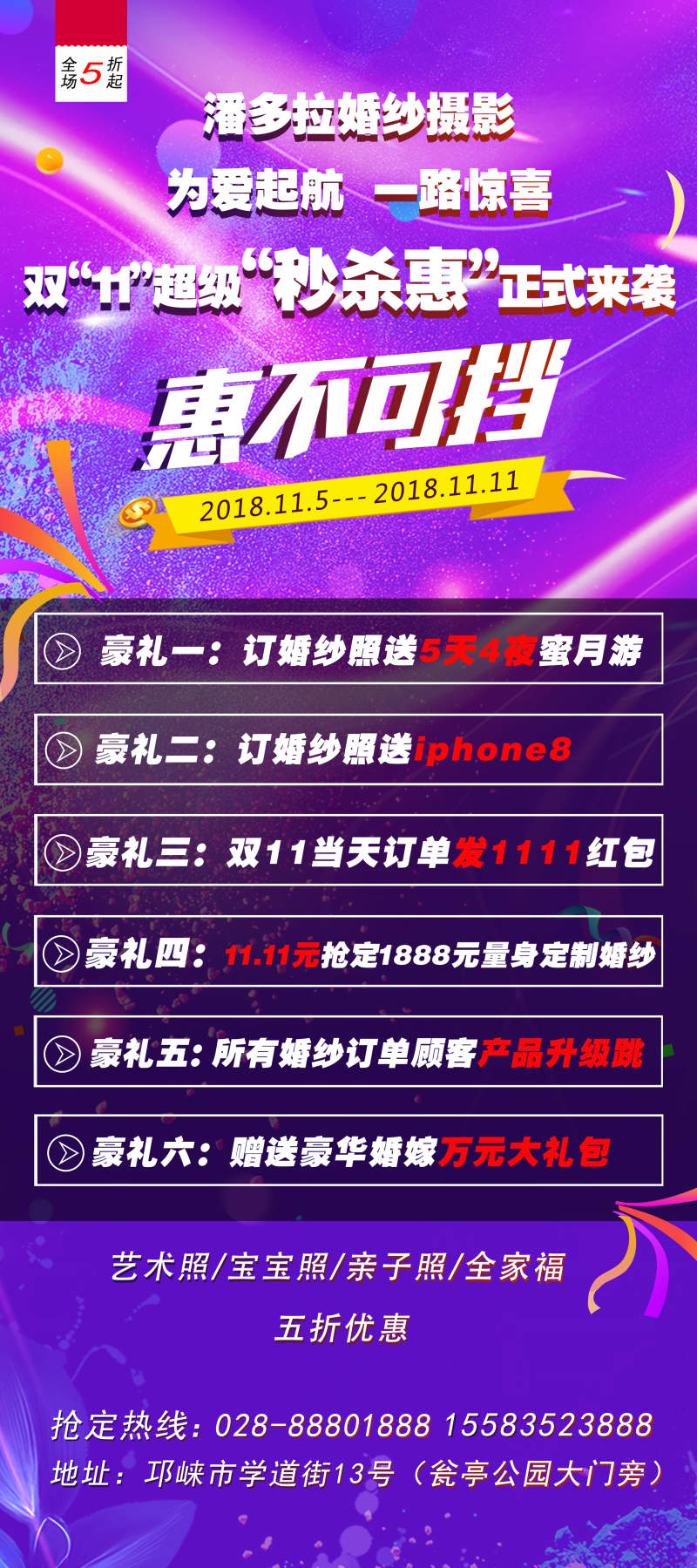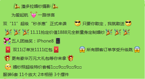 潘多拉婚纱摄影 为爱起航 一路惊喜双“11”超级“秒杀惠”正式来袭